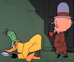 Holmes: “Why, yes, of course! The killer was right under our noses all the time! It is quite elementary, really – Sir Montague Fartsmedley has been trying to put us off the scent all this time! For the inflatable banjo salesman who visited Lady Blatworthy in the disused Whoopee Cushion factory on that fateful night was none other than his own brother: Eleanor Pube-Gussett the second! Once I had deduced that, it followed that the reason the chicken-sexer’s pet wallaby behaved so strangely when he smelled Lady Blatworthy’s knitted Balaclava was because the missing mouth-organ of Ponders End was secreted inside! The rest you know. What do you say to that, Watson?”