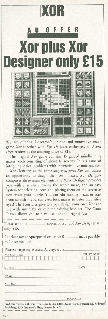 Scan of a subscriber special offer of XOR plus the XOR designer,